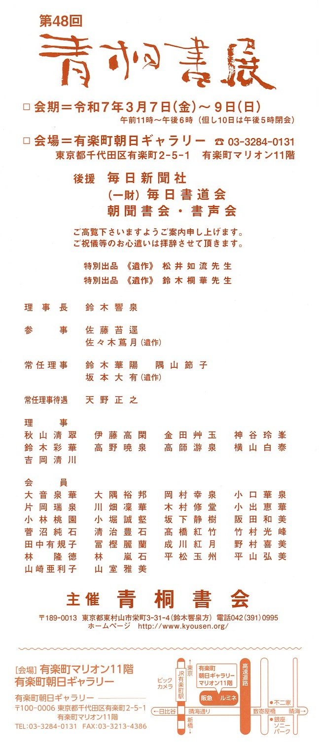 第34回 紫苑の会書展 2025年4月25日 最終更新日時 : 2025年10月2日 staff 2025年5月30日(金)~6月2日(月) 本院顧問 大石三世子先生が主宰される紫苑の会の第34回 紫苑の会書展 が開催されます。 ◷ 2025-04-25